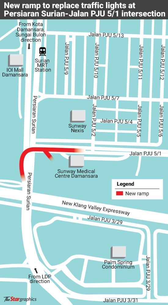 With this change, motorists coming from Damansara-Puchong Expressway (LDP) and Bandar Utama heading towards Sunway Nexis, Dataran Sunway or PJU5 area will have to access a ramp above Persiaran Surian.