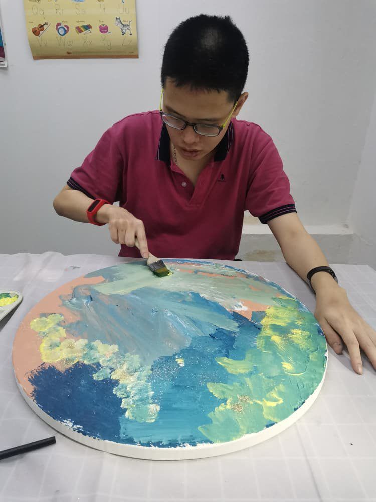 He currently attends vocational training in beading, cooking and painting at Persatuan Kebajikan Sinar Cahaya Istimewa in Kuala Lumpur.