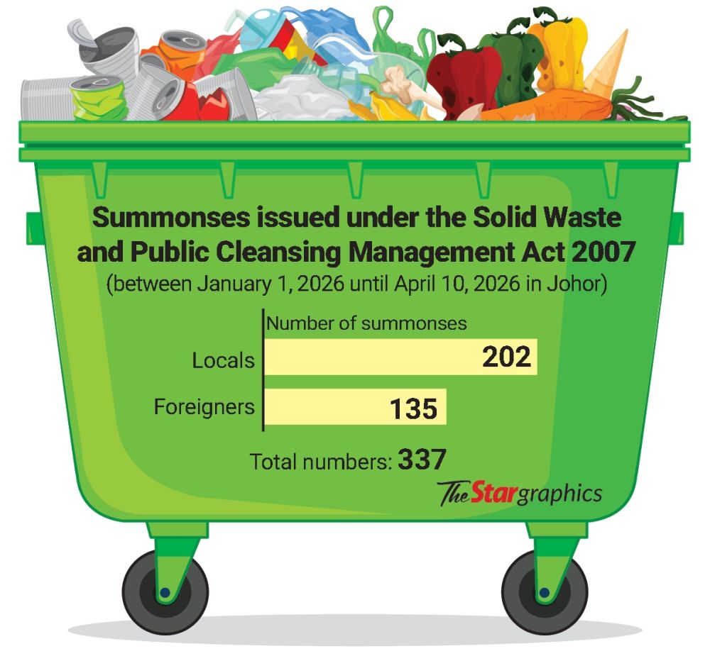 Zainal Fitri disclosed that a total of 337 summonses for littering have been issued in Johor this year as of April 10, with 202 being Malaysians and the rest non-citizens.