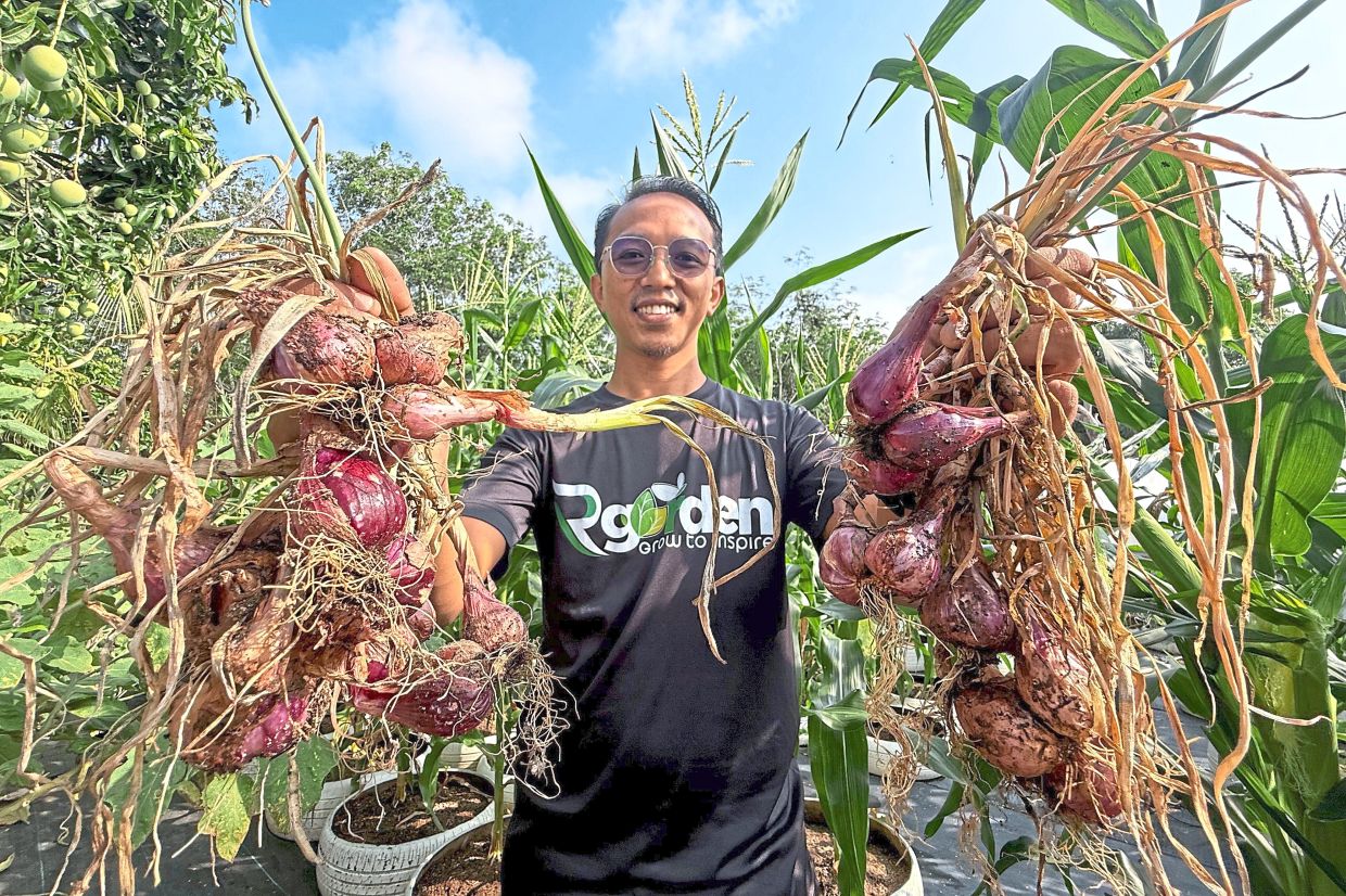 MELAKA, 15 April -- Mohd Khaironnie Ng Mohd Raisman Ng, 41, menunjukkan bawang yang ditanam di kebun yang diusahakan di tepi rumahnya ketika ditemui Bernama di Kampung Bukit Durian, Ayer Molek di sini hari ini. Pekerja swasta itu berkata kebun sayur itu diusahakan di tanah seluas kira-kira 30 meter persegi sejak 10 tahun lepas. --fotoBERNAMA (2026) HAK CIPTA TERPELIHARA