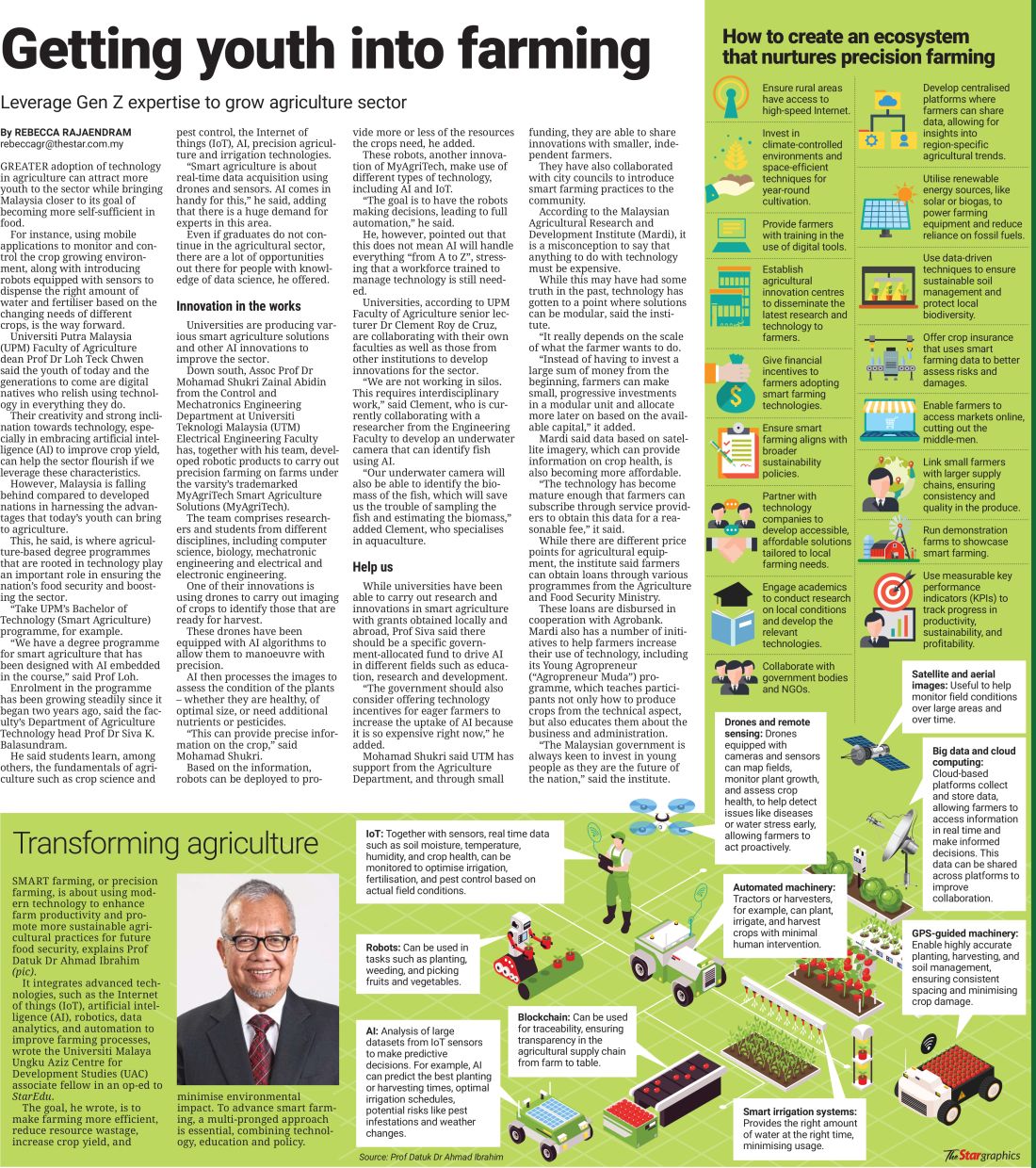 GREATER adoption of technology in agriculture can attract more youth to the sector while bringing Malaysia closer to its goal of becoming more self-sufficient in food.