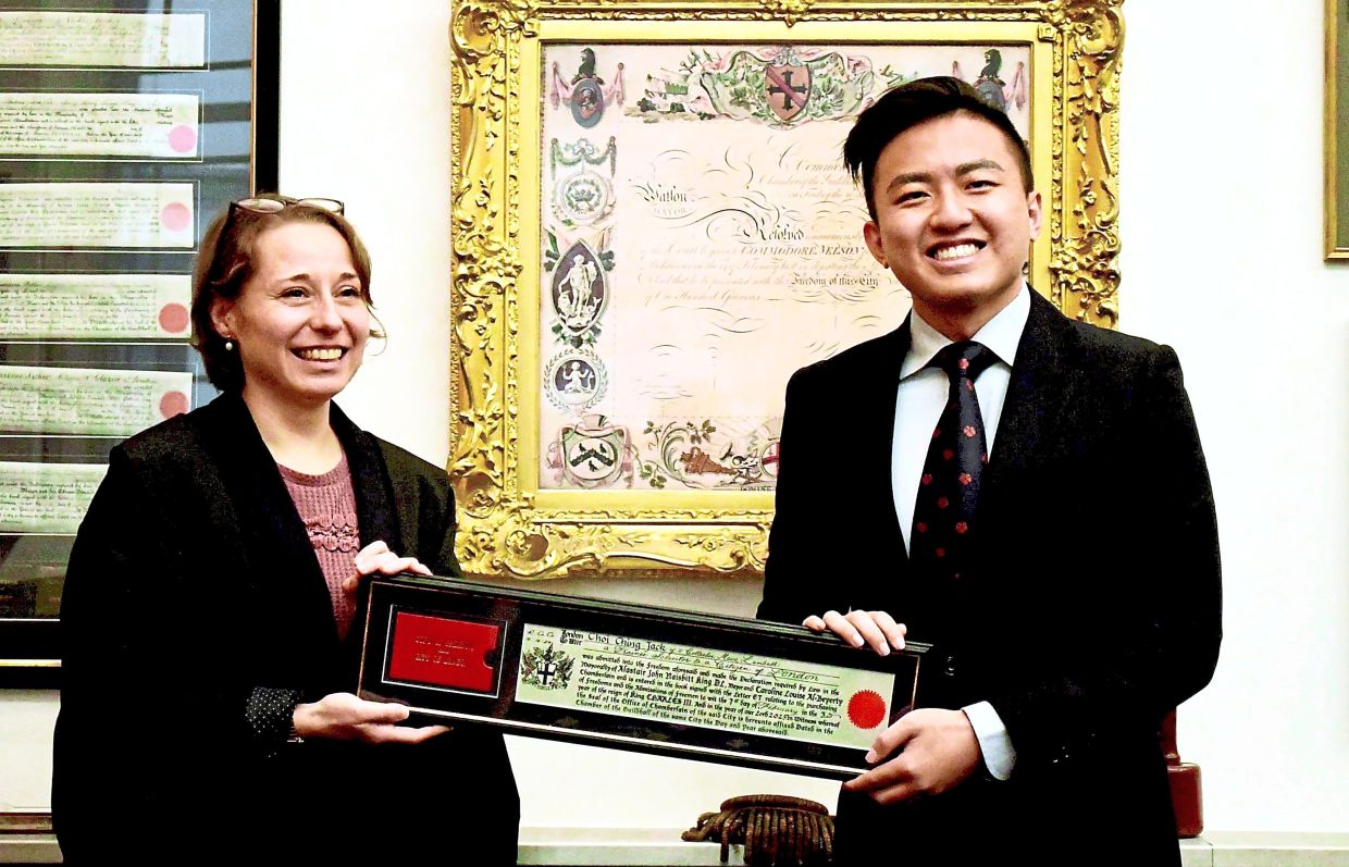 Trainee solicitor Choi Ching Jack, 25, received the Freedom of the City of London award at the Chamberlain’s Court in Guildhall. The award recognised his voluntary contributions to the Malaysian diaspora through organisations such as the British Malaysian Society and the Malaysian Lawyers UK Network.