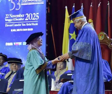 The Sultan of Perak, Sultan Nazrin Shah, conferred the Honorary Degree of Doctor of Laws upon former Chief Justice of Malaysia Tun Tengku Maimun Tuan Mat in recognition of her service and contributions. A Universiti Malaya (UM) alumna, Tengku Maimun made history as the first woman appointed as Chief Justice in the country. Presiding as chancellor at the university’s 65th convocation ceremony, Sultan Nazrin announced the appointment of Tan Sri Mohd Annuar Zaini as the pro-chancellor of UM.