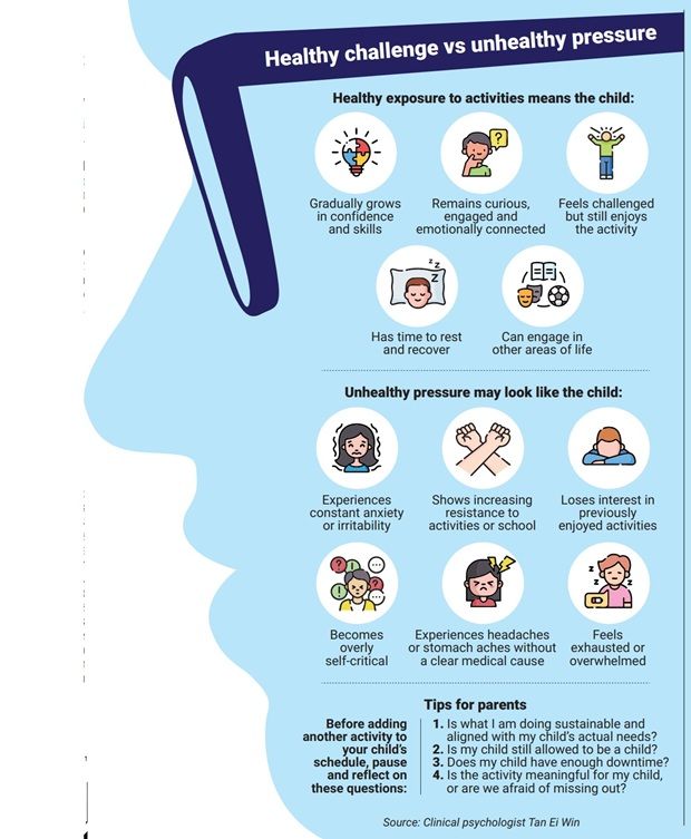 Clinical psychologist Tan Ei Win said children today may be carrying performance expectations much earlier in life, as achievement is increasingly measured across multiple domains.