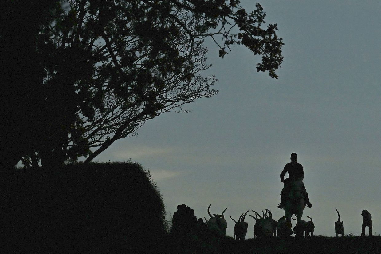Vasiliu running alongside fox hounds during the Thurlow Fox Hunt near Newmarket, Suffolk. Anti-foxhunting campaigners have just one goal: to confuse the pack of dogs chasing a fox and prevent its death. — AFP