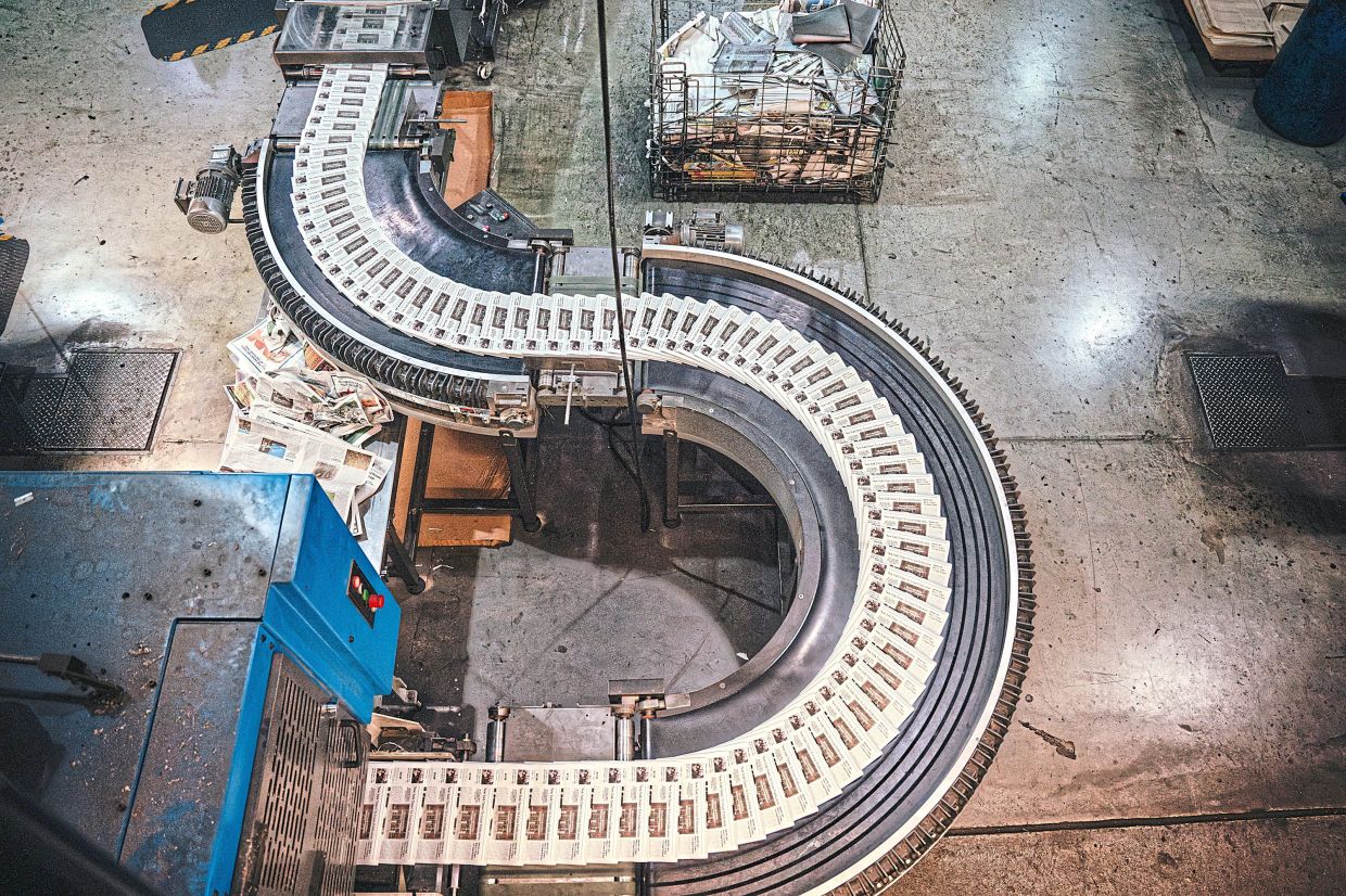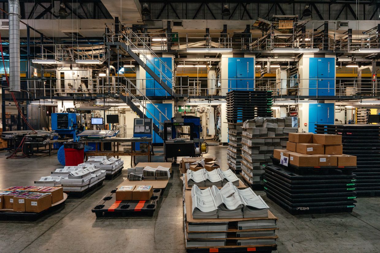 Printed copies of The Onion travel down one of Topweb’s conveyer belts in Chicago. — ©2024 The New York Times Company