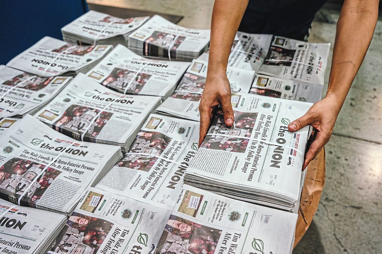 The print edition is part of a variety of perks that the company plans to offer online subscribers, who pay US$5 (RM21.60) a month, said Ben Collins, the CEO of The Onion’s parent company, Global Tetrahedron. The company plans to offer invites to live events, access to The Onion’s archive of physical papers, and sponsorship of ambitious editorial projects, such as a video titled “The Perfect One-Pot, Six-Pan, 10-Wok, 25-Baking-Sheet Dinner” Collins said.
