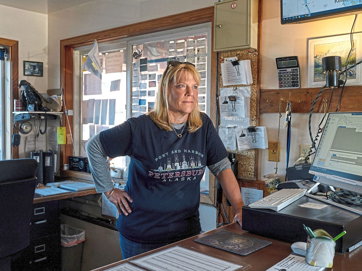 Glorianne Wollen, harbormaster, in Petersburg, Alaska, Aug. 16, 2024. (Ash Adams/The New York Times)