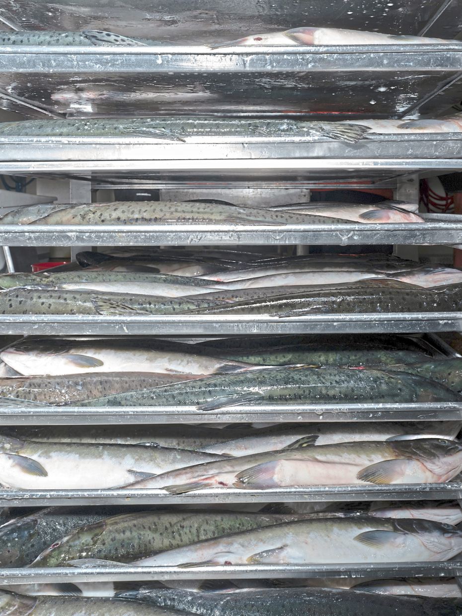 Salmon on pans, ready for freezing, at Circle Seafoods in Metlakatla— ©2024 The New York Times Company