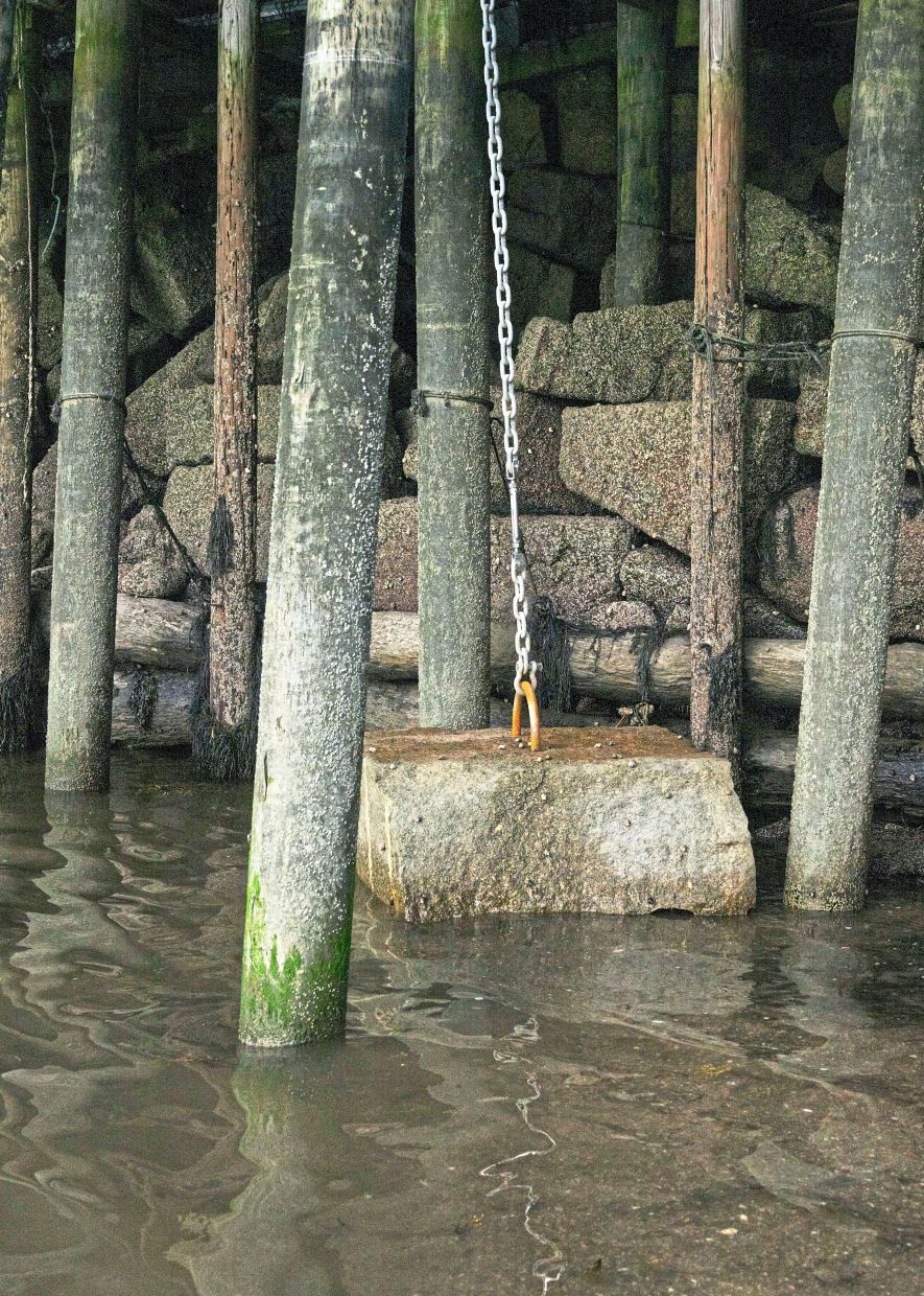 Stone blocks are anchored to the dock at Fifield Lobster in Stonington . — ©2024 The New York Times Company
