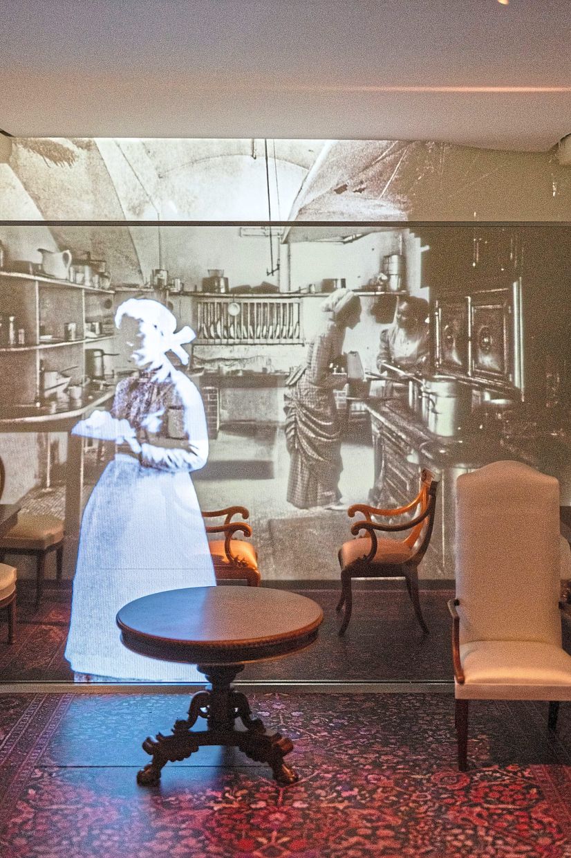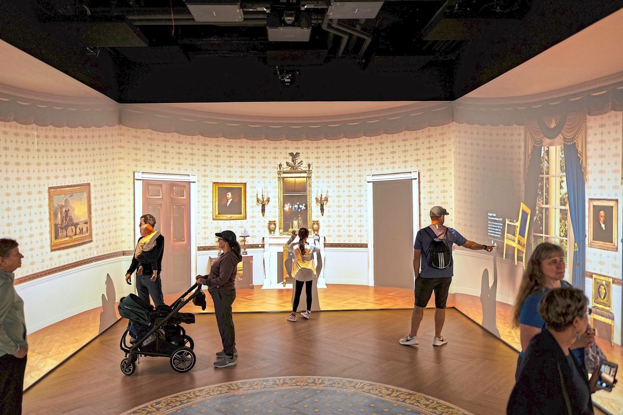 The museum’s stories are told in part through new technologies. As visitors walk past a scale model of the rooms in the White House, ghost-like images animate the way the real rooms were once used. Press a button for the Red Room, and the swearing-in of Rutherford B. Hayes comes to life.