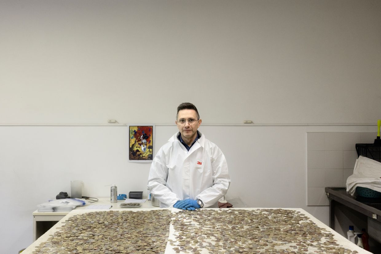 Marchioni and his team sift through the coins for smaller items like religious medals, guitar picks, keys and even jewellery. Expensive-looking pieces are handed over to the police.