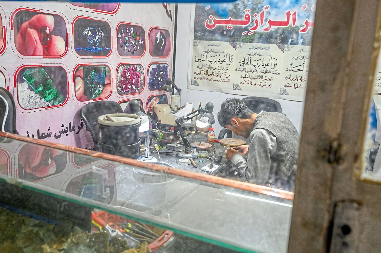 Across Kabul’s bustling gemstone market, Azizullah Niyazi illuminated his collection of lapis lazuli, rubies and emeralds under a desk lamp.