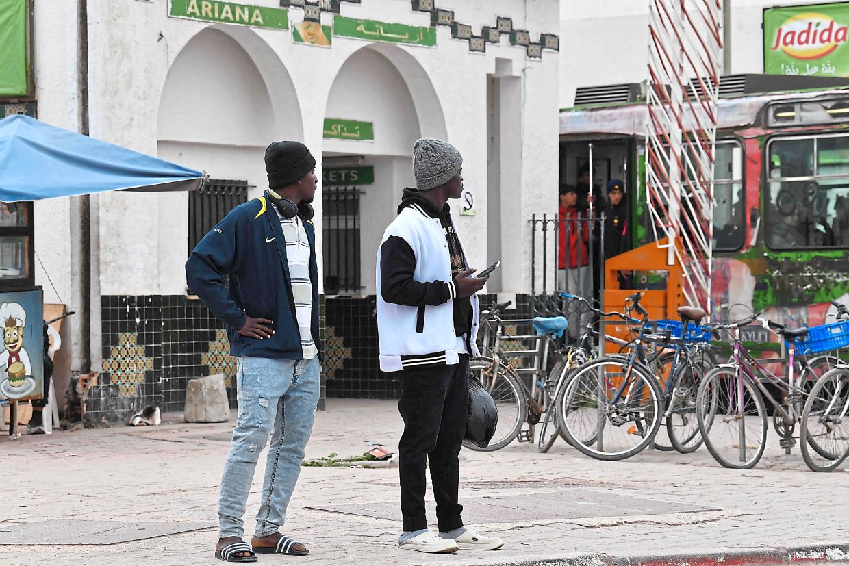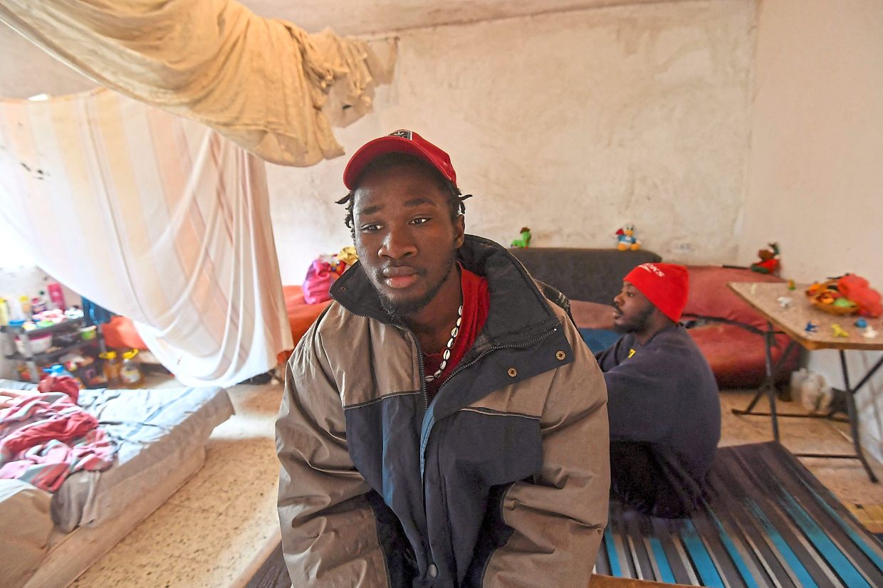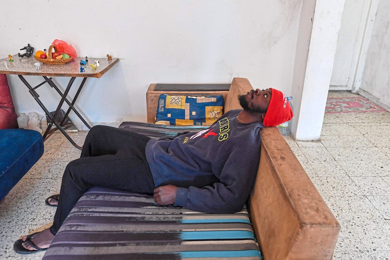 Two migrants from sub-Saharan Africa resting at a house in Tunis. Tunisia is a key transit country for thousands of sub-Saharan migrants seeking to reach Europe by sea each year. — AFP