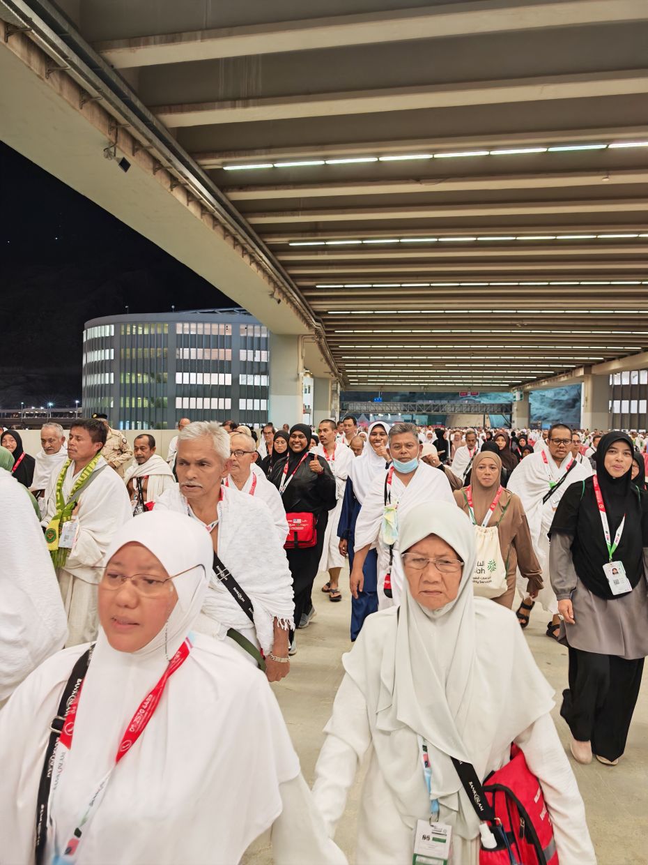 Chief Secretary to the Government Tan Sri Shamsul Azri Abu Bakar, who was part of the Malaysian entourage, smiled sheepishly when another pilgrim Googled him and asked him if he was indeed who he was. And the wife of Datuk Mohd Na’im Mokhtar, Minister in the Prime Minister’s Department (Religious Affairs), Datin Nik Roslini Raja Ismail was spotted carrying pilgrims’ bags into the buses and taking photos for those who handed her their phones, not knowing who she was.