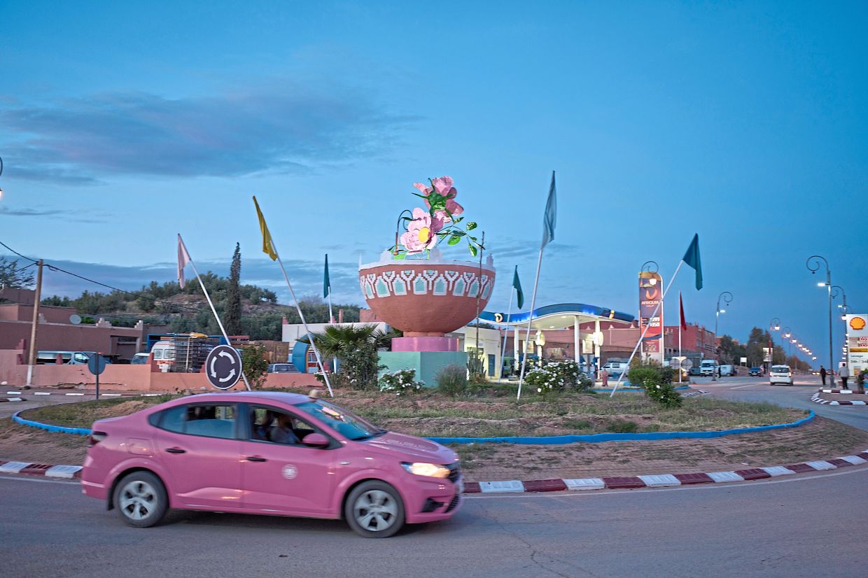 From the rose-shaped monuments at Kalaat M’Gouna’s entrances to the Pepto Bismol pink taxis, nearly everything here adheres to the theme.