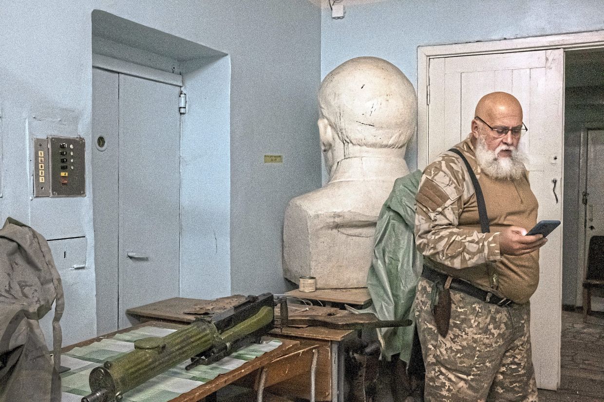 “They may be old, but they’re effective,” said Voroshylovskyi, standing near downed drones displayed at their base – a building still marked by Ukraine’s Soviet past, including a bust of Lenin turned to face the wall.