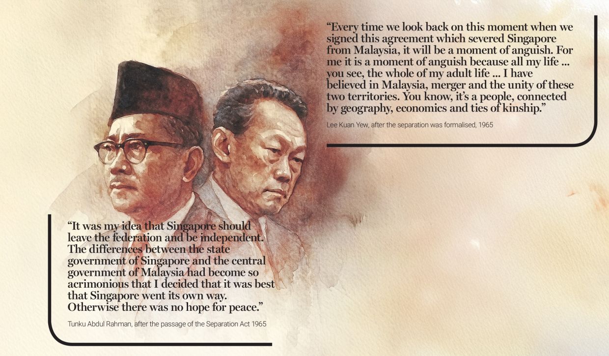 But over time, differing approaches to governance, economic policies and political direction eventually led to Singapore’s formal separation from Malaysia on Aug 9, 1965.