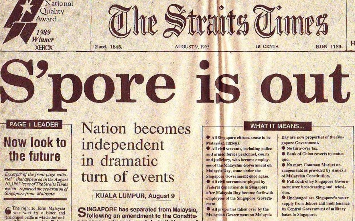> Aug 7, 1965: The governments of Malaysia and Singapore sign The Independence of Singapore Agreement 1965, formalising Singapore’s secession from Malaysia.
