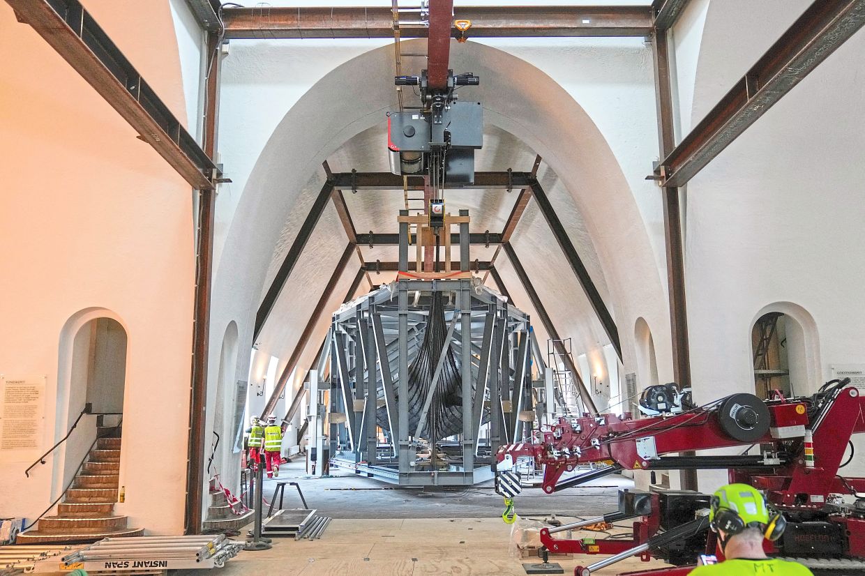 The Oseberg ship, currently housed in the Viking Ship Museum, is placed in a specially built steel frame, ahead of its relocation to the new Viking Age Museum in Oslo, Norway. — Reuters