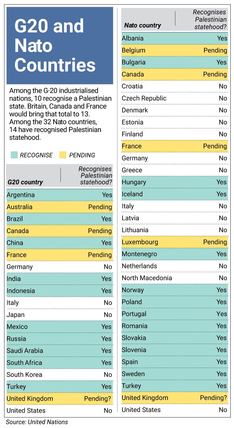 Among the Group of 20 industrialised nations, 10 already recognise a Palestinian state.