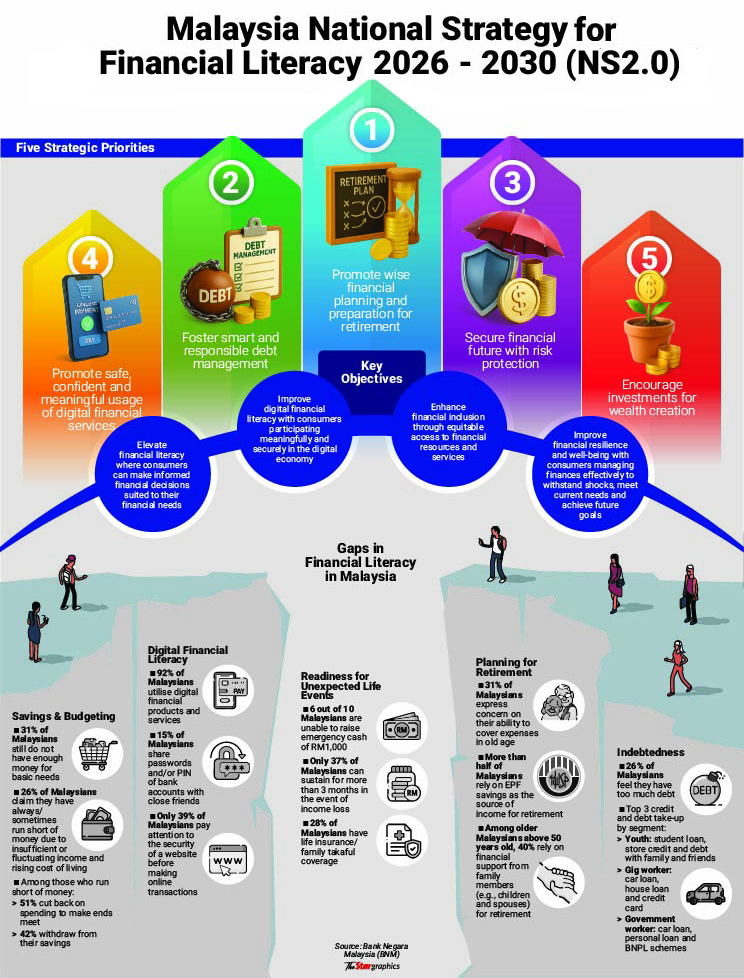 THE National Financial Literacy Strategy 2026–2030 (NS2.0) has been launched to promote financial literacy in Malaysia, especially among Malaysian youth.