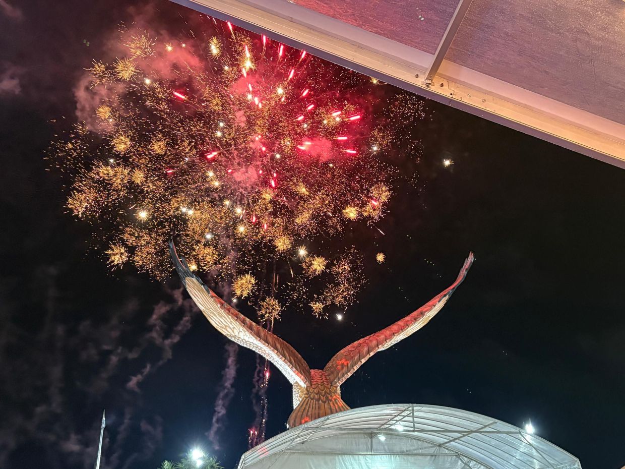 For freedom from violence: In Malaysia, this year’s EVAW campaign was marked with the illumination of the eagle statue in orange lights at Dataran Lang, Langkawi, yesterday. — Photos: JPW