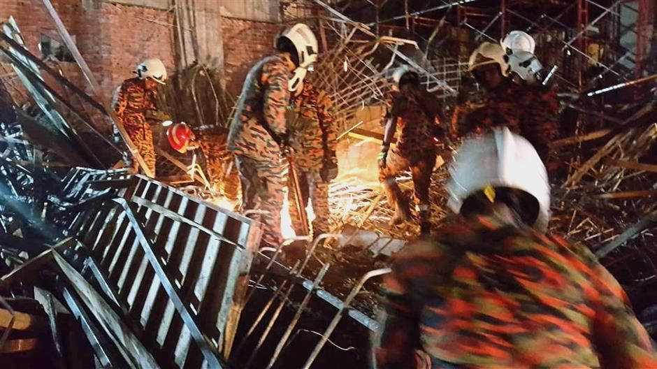 KUALA LUMPUR: Firemen took nearly 12 hours to retrieve the body of a Bangladeshi worker who was trapped after a section of a building under construction collapsed in Jalan Cochrane here.
