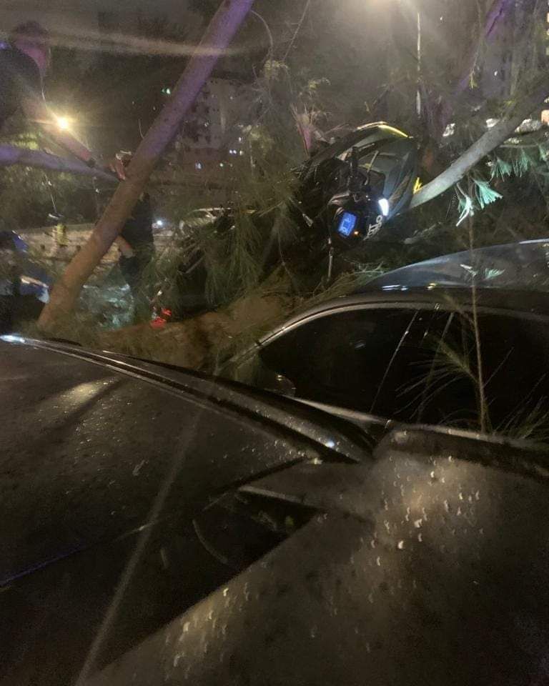Several cars and motorcycles were damaged in the 1am incident, in which a motorist spotted a waterspout.
