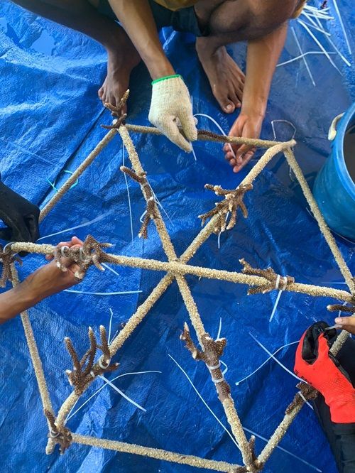 Reef stars are a coral restoration method adopted from the Mars Assisted Reef Restoration System (MARRS), widely used in Indonesia.