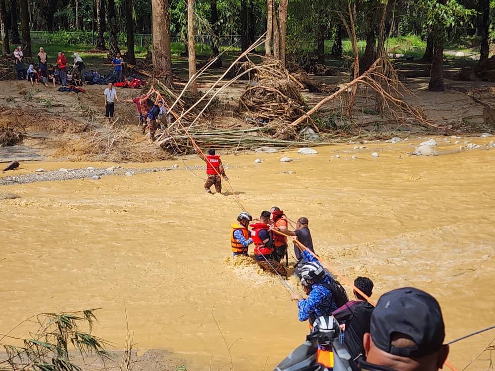 Additionally, heavy rainfall since 6.30pm on Friday caused two more bridge collapses in Kampung Pasir and Kampung Sungai Muda, which connect Kampung Piong.