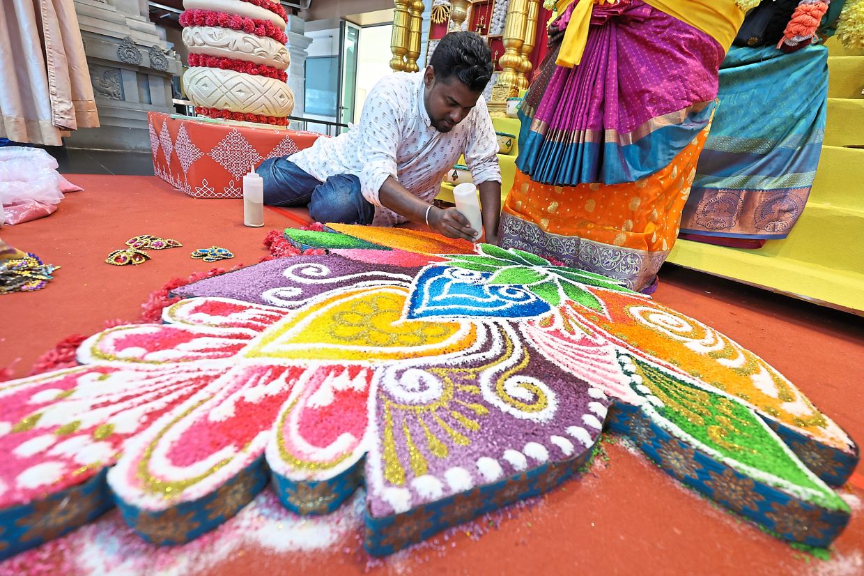 Shops and malls have also adorned their premises with colourful decorations and vast yet intricately designed kolams.