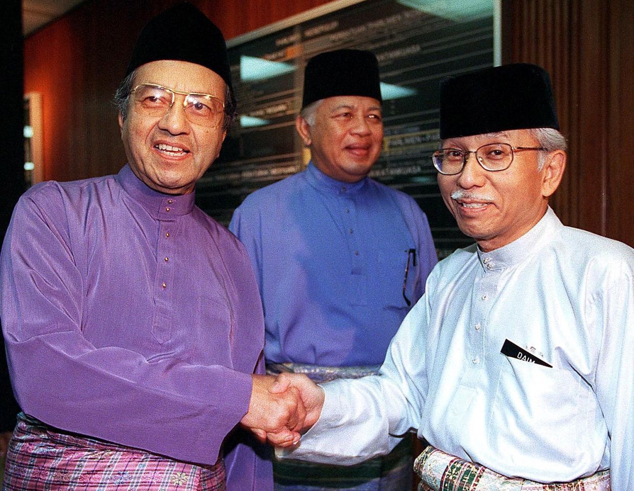 Tun Daim Zainuddin having a hearty chat before dinner (from left) with the president of the Islamic Development Bank Dr Ahmad Mohamed Ali, former Prime Minister Tunku Abdul Rahman and the rector of the International Islamic University Prof Muhammad Abdul Rauf in 1985.