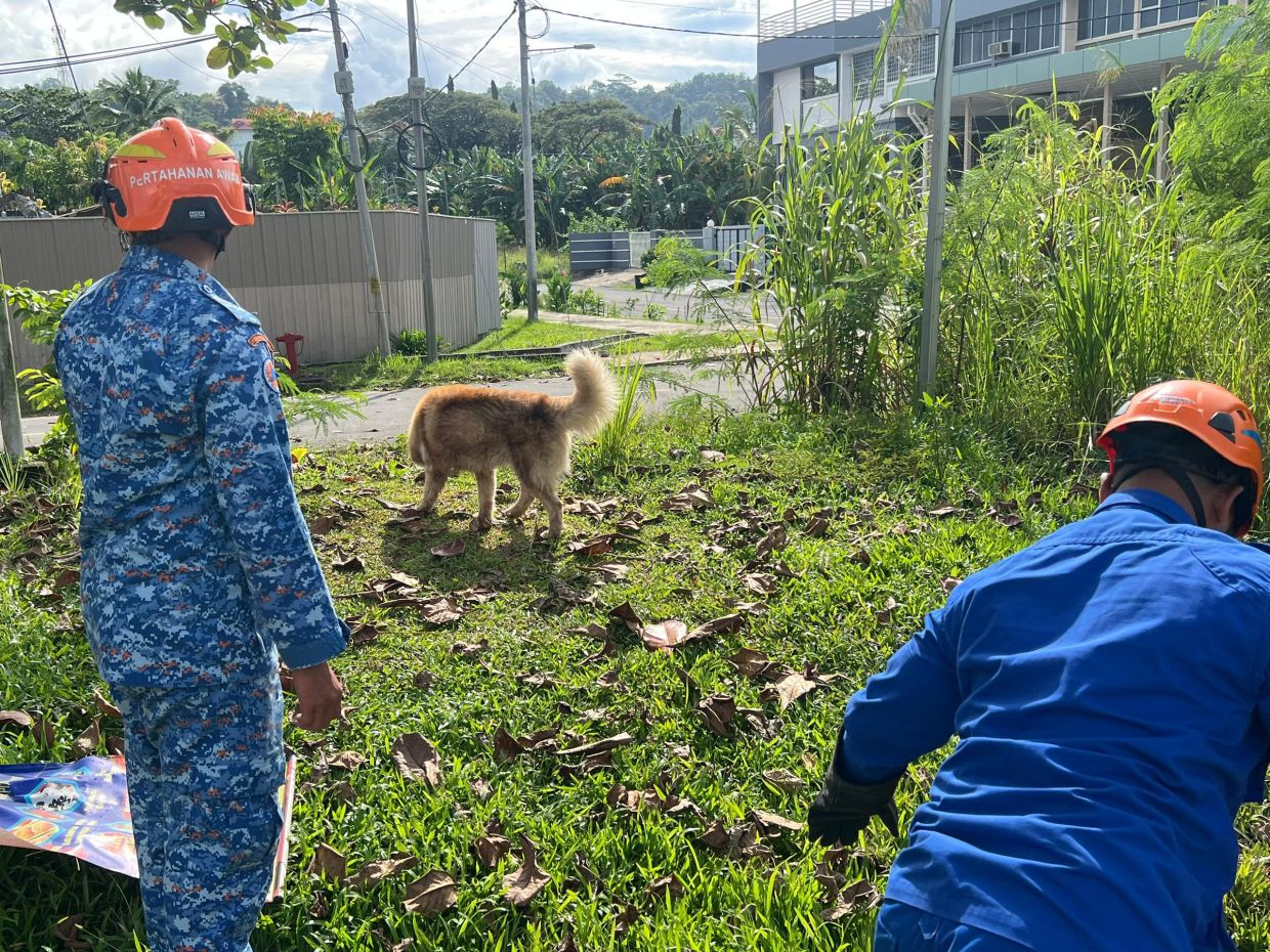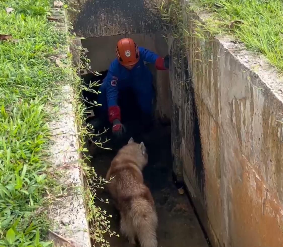 KOTA KINABALU: The adorable antics of a fluffy Alaskan Malamute that fell into a drain in the city have caught the attention of social media users.