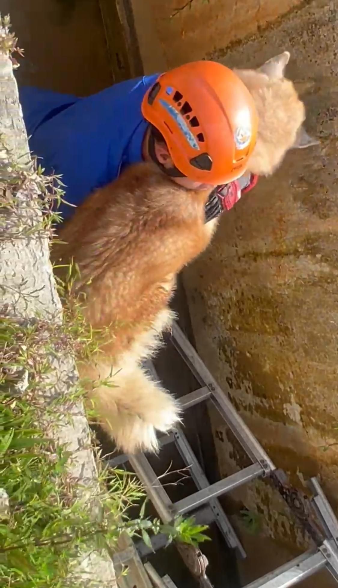 Rescue personnel carried the dog up the ladder and out of the drain. The dog was then released back into the area, as it was believed to live nearby.