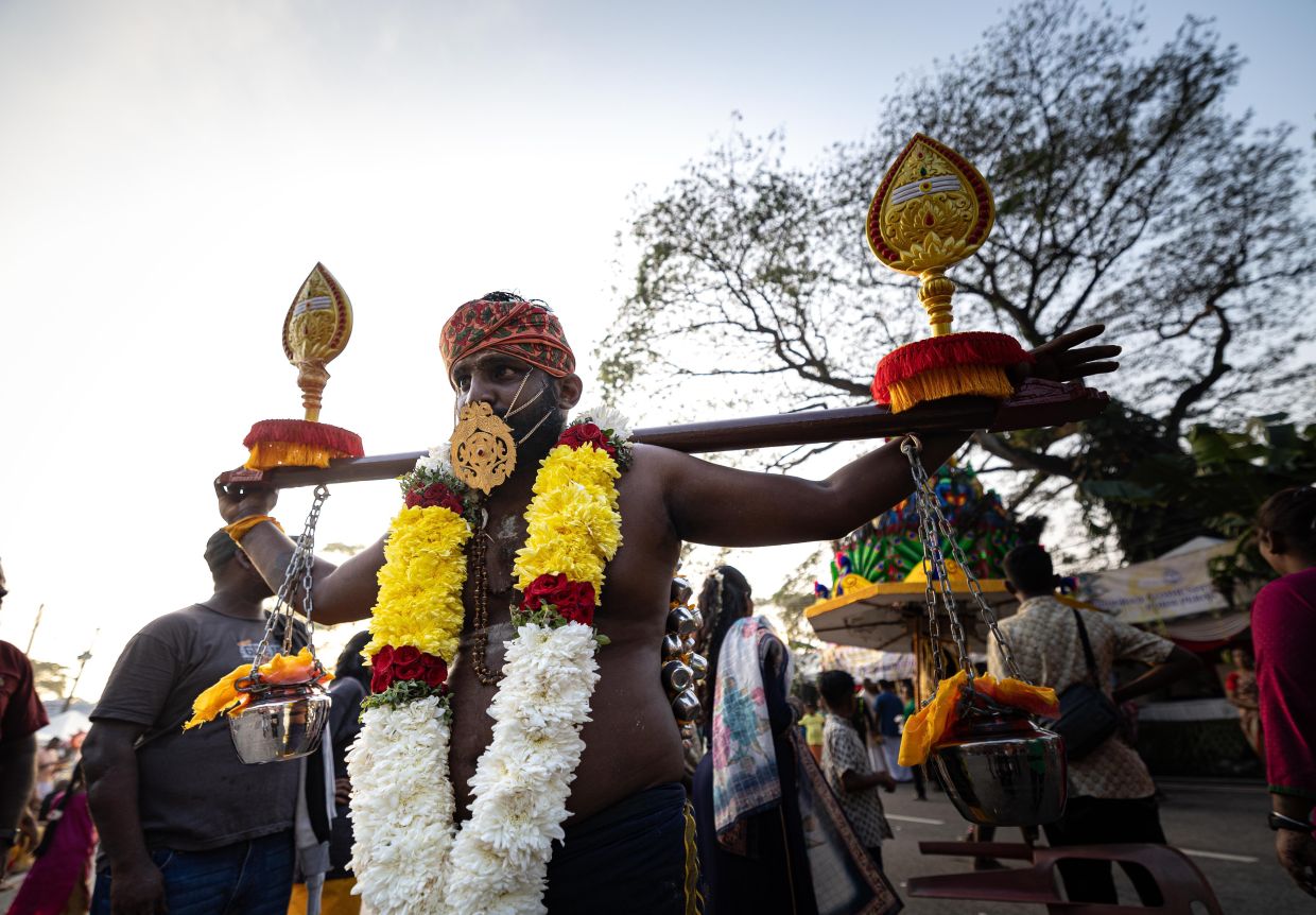On Thaipusam, devotees carry kavadi, which can include elaborately decorated structures, as well as the paal kudam, to fulfil a vow, to seek blessings or ask for forgiveness.