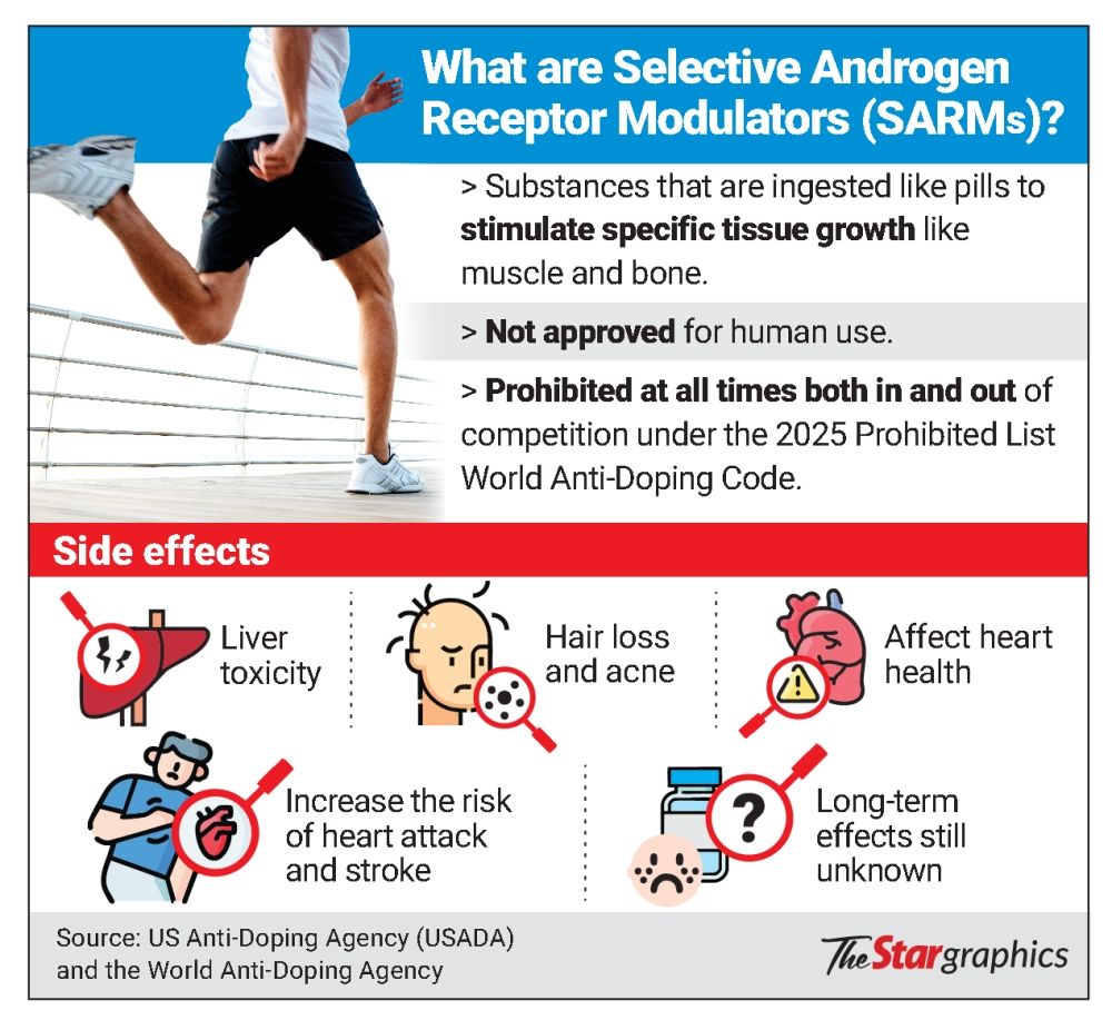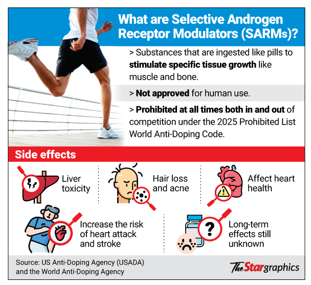 SARMs are also listed as a banned substance under the Anti-Doping Agency Malaysia (Adamas) and the World Anti-Doping Agency (Wada) prohibition list.