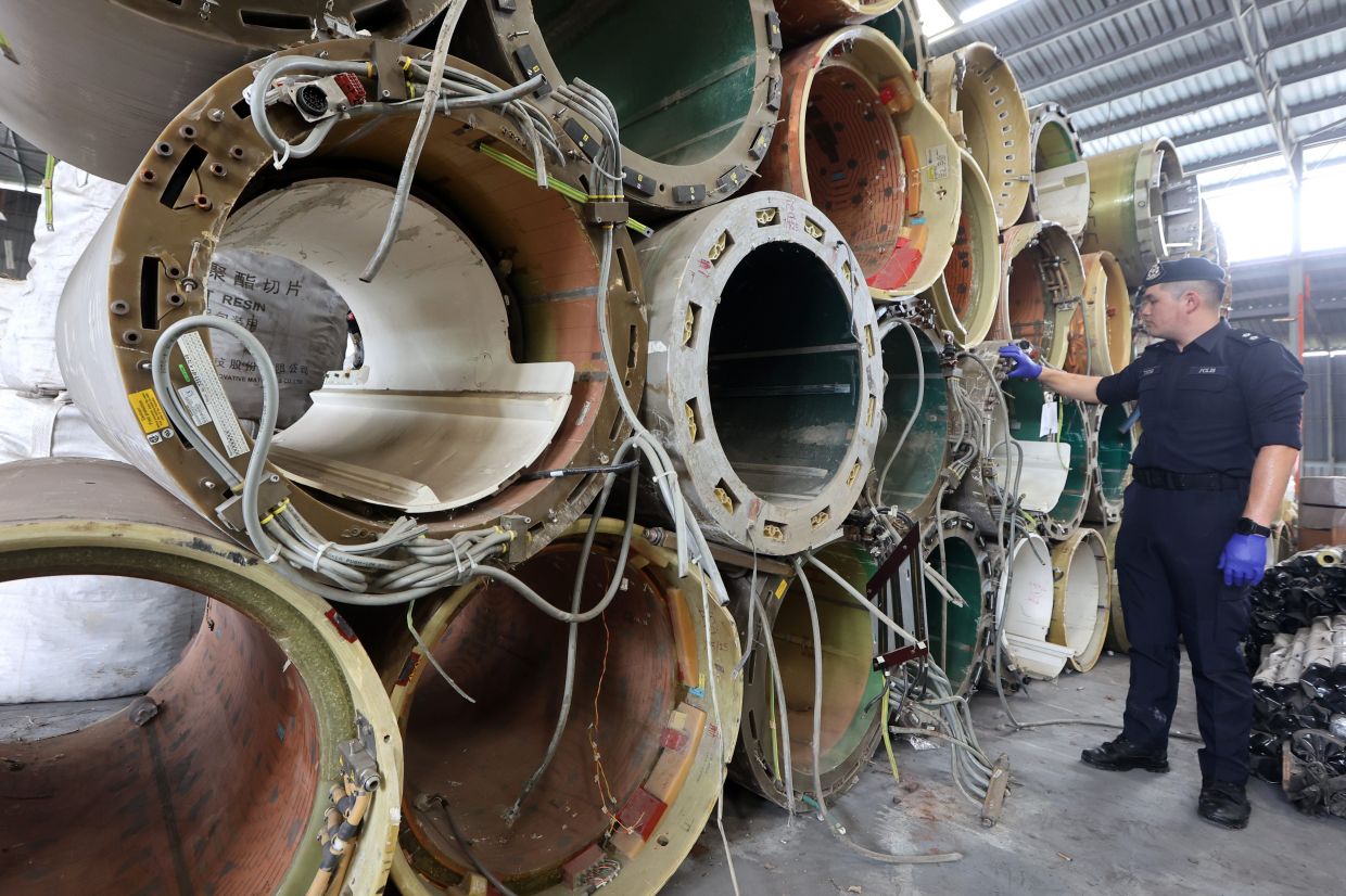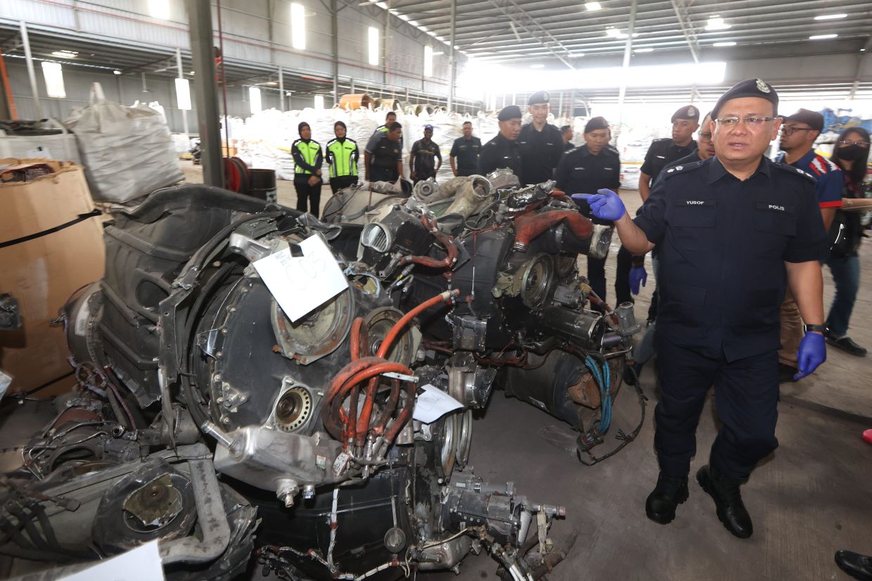 KOTA TINGGI: A raid at an illegal scrap processing factory located along Jalan Lombong here led to a discovery of over 46,000kg of electronic waste (e-waste) but also parts of a commercial plane and other materials worth RM23.8mil.