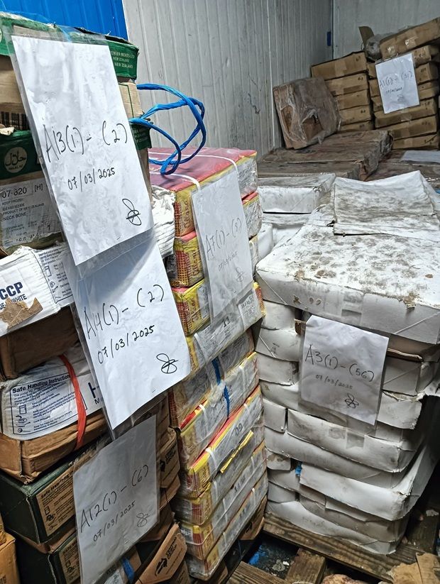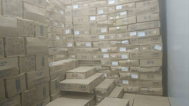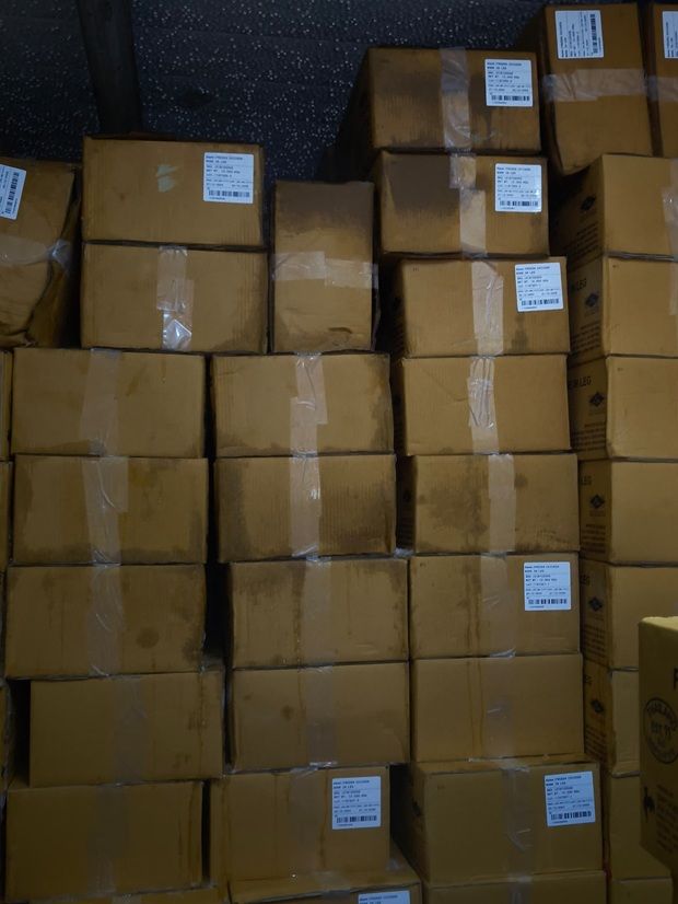 Some of the frozen food seized during a simultaneous raid in seven Sabah districts..