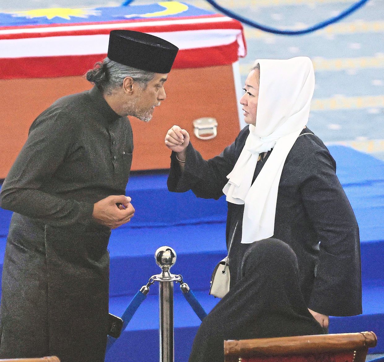 Family in mourning: Abdullah’s daughter Nori Abdullah and her husband Khairy Jamaluddin at the state funeral held at the National Mosque in Kuala Lumpur. — AZMAN GHANI/The Star