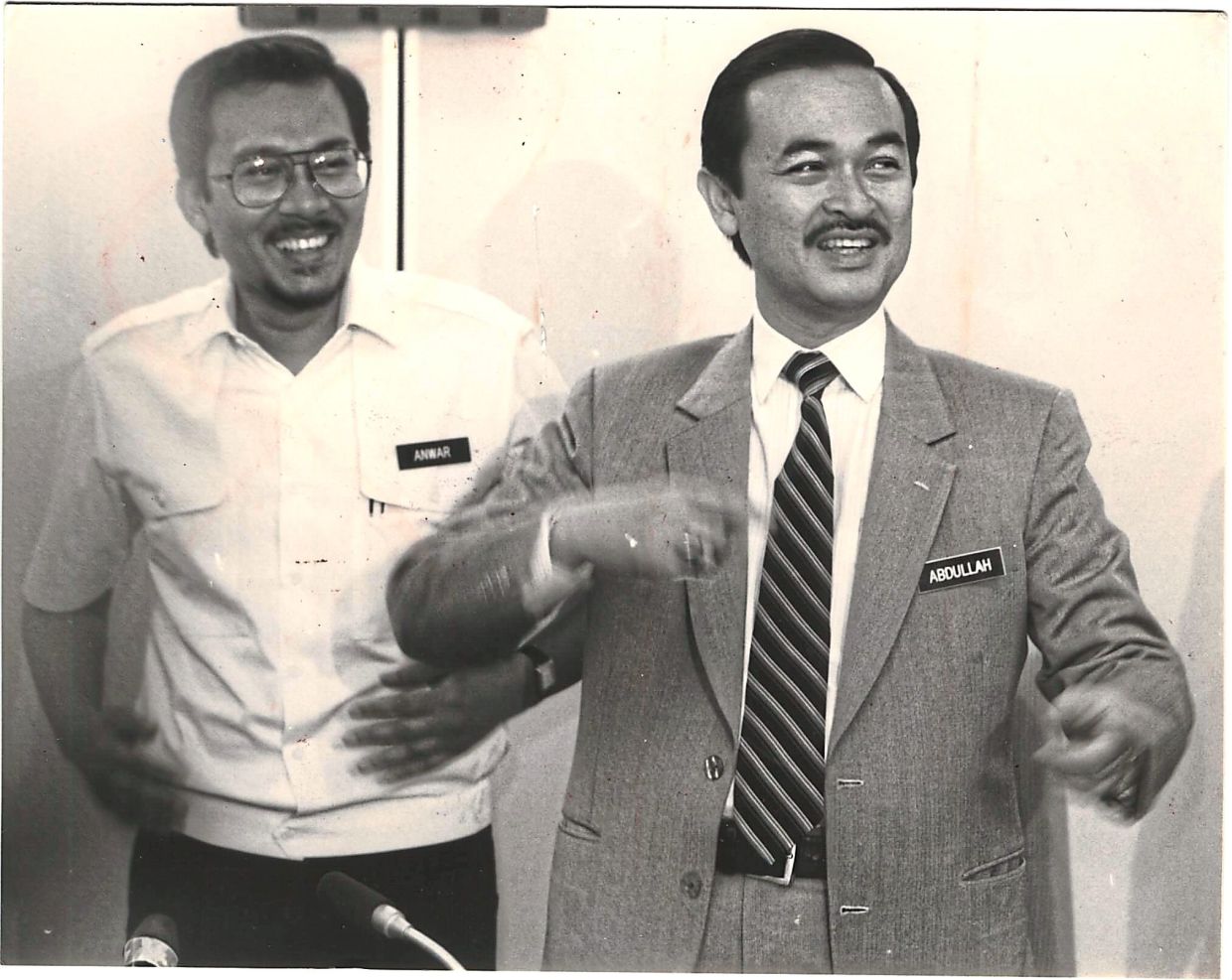 ‘I’m getting out of here’: That’s what then outgoing Education Minister Abdullah seemed to be saying to then Agriculture Minister Anwar, who succeeded him after a mini Cabinet reshuffle.