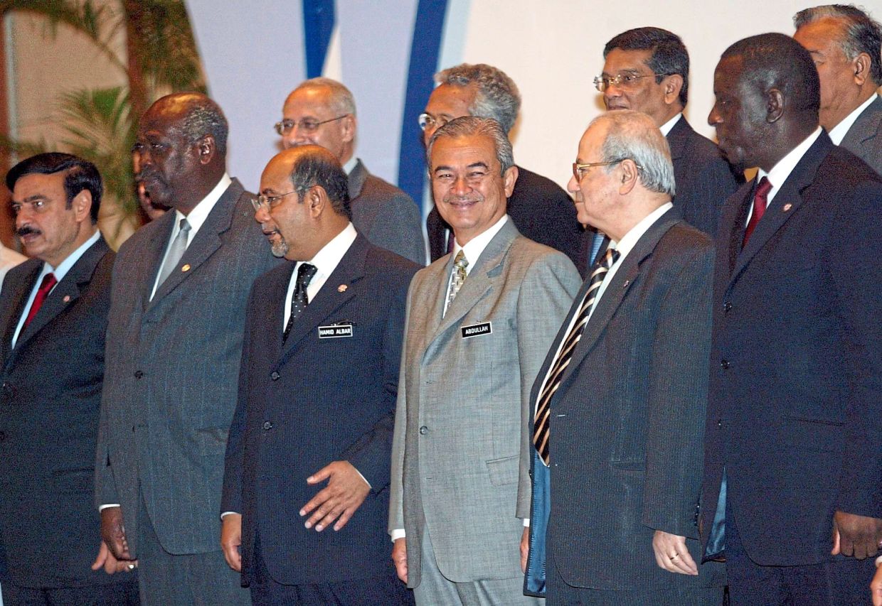 Pushing for peace: Abdullah and then Foreign Minister Datuk Seri Syed Hamid Albar (second from left) at the Ministerial Meeting of The Non-Aligned Movement committee meeting on Palestine in Putrajaya. Second from right is Palestine’s Foreign Minister Farouk Kaddumi. — RAJA FAISAL HISHAN/The Star