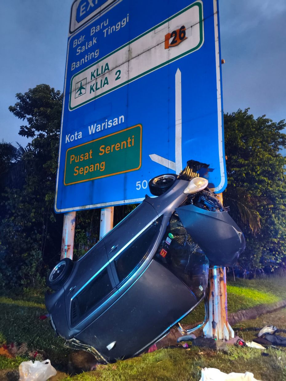 SEPANG: A 25-year-old man was killed after his car crashed into a large road sign at Bandar Serenia in Salak Tinggi.