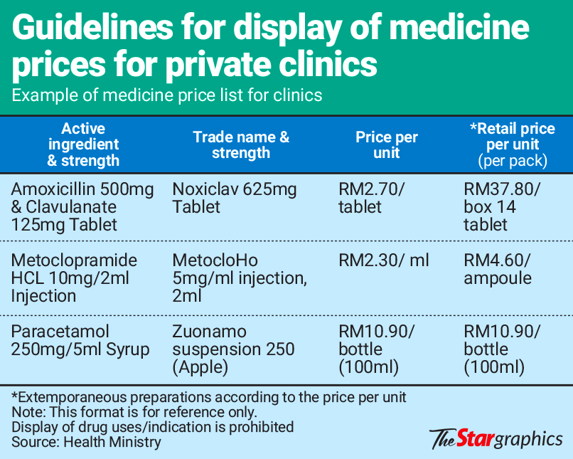 “All medicine displayed for sale must come with a price list in ringgit that shows the price per unit, price per packet or the price per dosage.