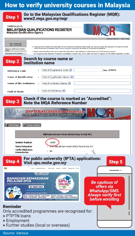 For overseas programmes, the former MQA deputy CEO (quality assurance) said recognition status could be checked through the e-SISRAF system or by contacting the MQA.