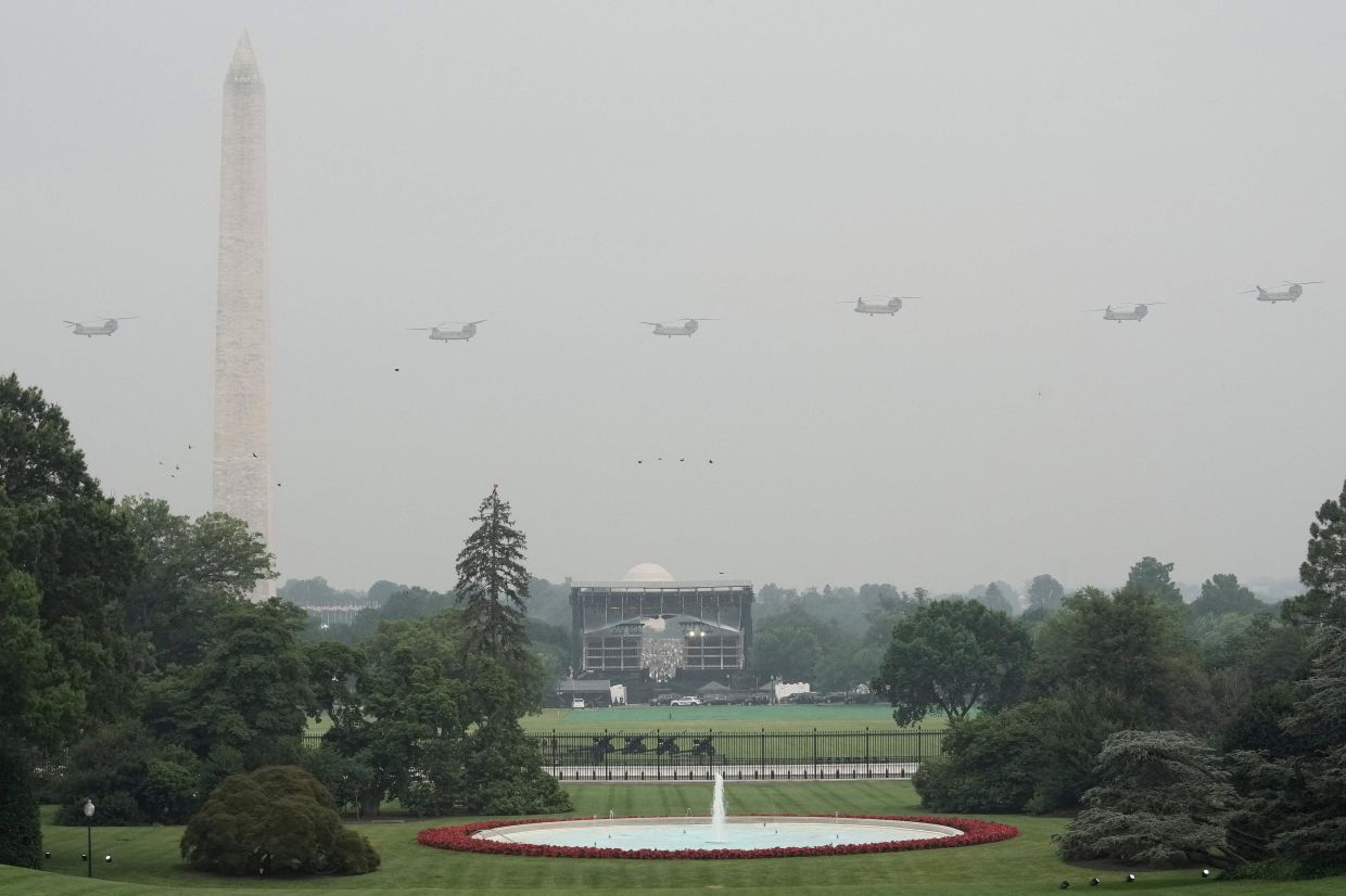 WASHINGTON (AFP): Parachutists glided through the air as soldiers marched and tanks groaned through the barricaded streets of Washington on Saturday (June 14) during a military parade long-coveted by US President Donald Trump, as a largely quiet crowd watched on.