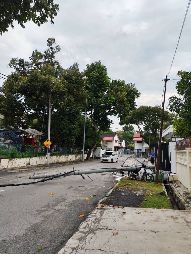 Rajendran noted the storm also uprooted trees in several areas on the island. The affected areas included Lengkok Bawah, Tingkat Besi, Jalan Gurdwara, Paya Kongsi, and Lebuhraya Batu Maung.