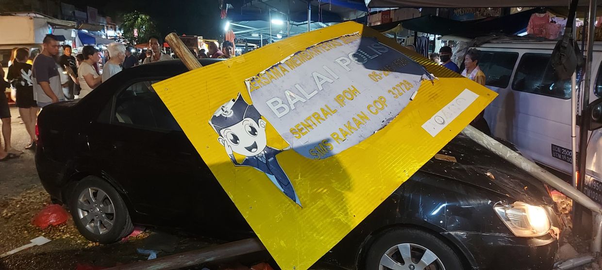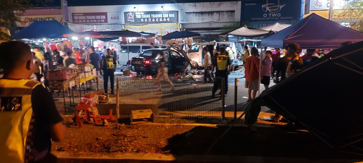 IPOH: Panic broke out at a bustling night market here on Friday (July 11) when a car ploughed through several stalls, injuring three people.