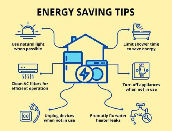 Fixing leaking taps or water heaters, limiting shower time, and unplugging chargers and devices when not in use are also effective ways to reduce unnecessary energy consumption.