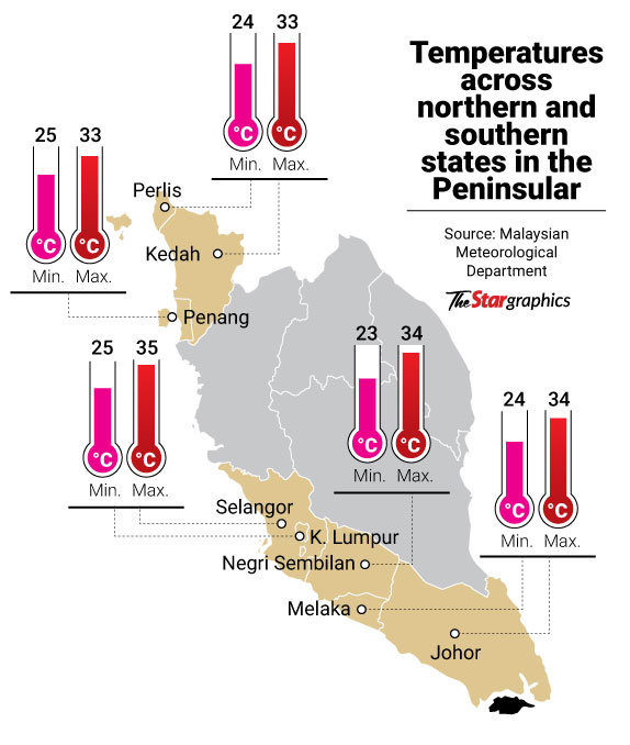 Selangor, Negri Sembilan, Melaka, Johor and Kuala Lumpur, meanwhile, will see drier days ahead with temperatures predicted to soar up to 35°C.